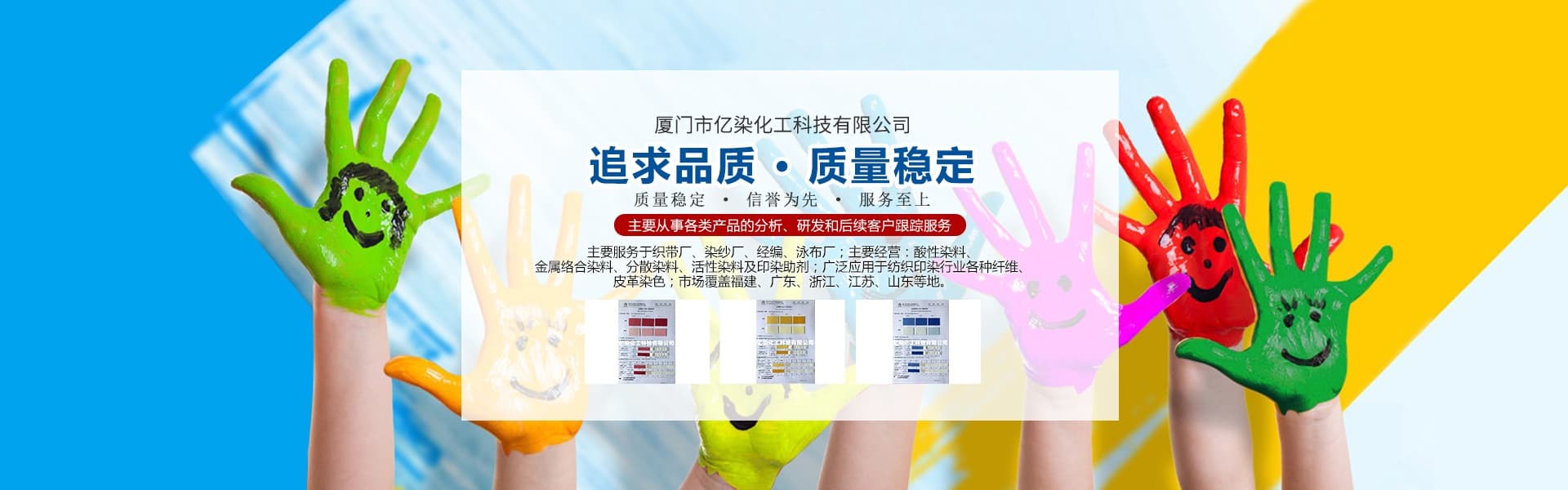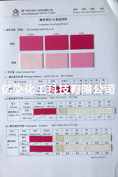 廈門(mén)市億染化工科技有限公司是一家集研發(fā)、生產(chǎn)、銷(xiāo)售一體的綜合型企業(yè)。公司主要經(jīng)營(yíng):酸性染料、金屬絡(luò)合染料、高牢度分散染料及印染助劑。公司信守“以誠(chéng)信贏合作、以質(zhì)量贏市場(chǎng)、以創(chuàng)新贏發(fā)展、以服務(wù)贏生存”的企業(yè)精神服務(wù)于廣大客戶,多年以來(lái)建立了良好的市場(chǎng)口碑,市場(chǎng)遍布福建、廣東、浙江、江蘇、山東及東南亞國(guó)家,與多家知名企業(yè)建立了長(zhǎng)期合作伙伴關(guān)系!